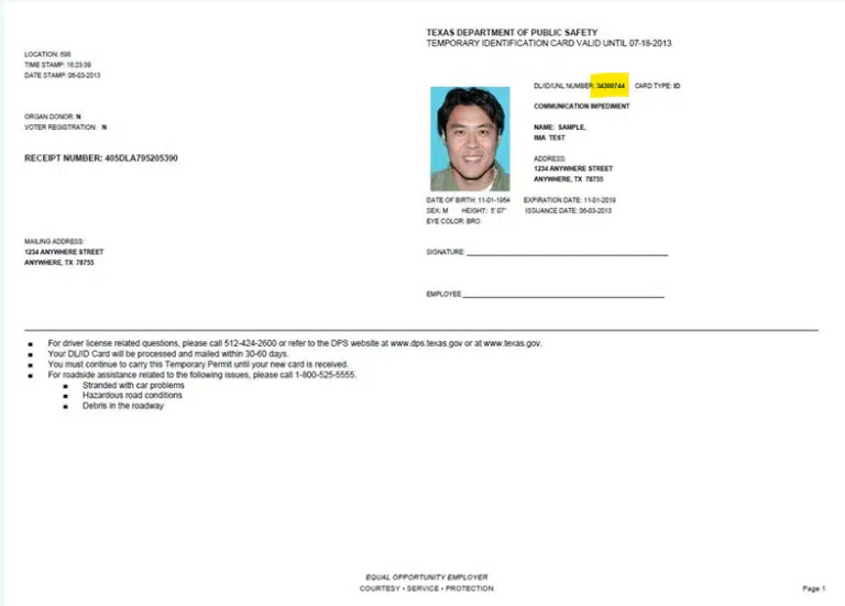 Valid DE-964 certificate (usually green, must state on certificate DPS AUTHORIZED COPY – FOR DRIVERS LICENSE ONLY)